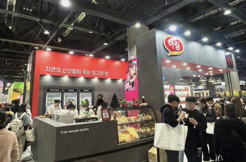 하림은 컬리의 대표 축산 파트너사로서 대규모 부스를 마련하고, 컬리 인기 상품인 ‘자연실록 IFF 큐브 닭가슴살’을 비롯해 ‘용가리 치킨’ ‘챔’ ‘수비드 닭가슴살’ ‘도넛 치킨’ ‘오!늘단백 쿠키’ 등 하림의 다채로운 제품을 한자리에서 만나볼 수 있게 했다. 1시간 마다 메뉴를 바꿔 가며 ‘자연실록 IFF 큐브 닭가슴살’ ‘용가리 치킨’ ‘치킨 너겟’ ‘닭가슴살 핫도그’ ‘더미식 라면’ 등을 맛볼 수 있게 한 시식 코너는 줄이 끊이질 않는다.