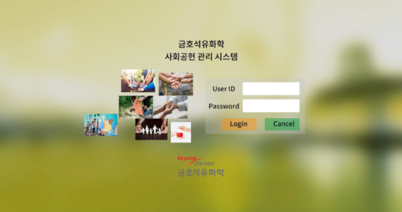 금호석유화학은 지난 코로나19 기간 외부 단체 활동 제한으로 축소되었던 사회공헌 활동을 본격 재개하며 새로운 시스템을 구축하였다. 신규 시스템 상에서 직원들은 사회공헌 활동을 간편하게 신청할 수 있으며, 활동 내역은 개인 인사 정보 시스템과 연동되어 간편하게 현황을 확인하고 목표를 관리해 나갈 수 있다.