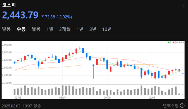 코스피 지수가 3일 2440대까지 하락했다. 미국 트럼프 행정부의 관세 부과의 영향이라는 분석이 나오고 있다.