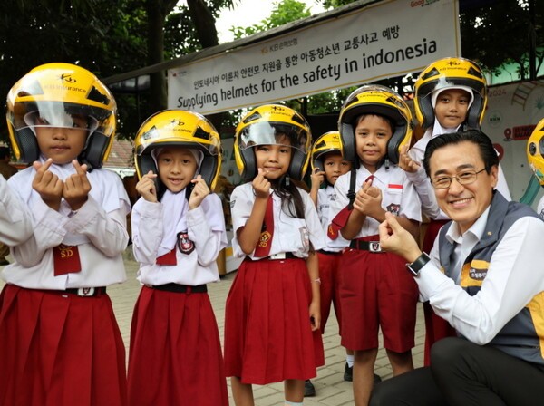이 행사에서 KB손해보험은 인도네시아 취약계층 아동·청소년에게 총 1000개의 이륜차 안전모와, 생필품을 지원했다.