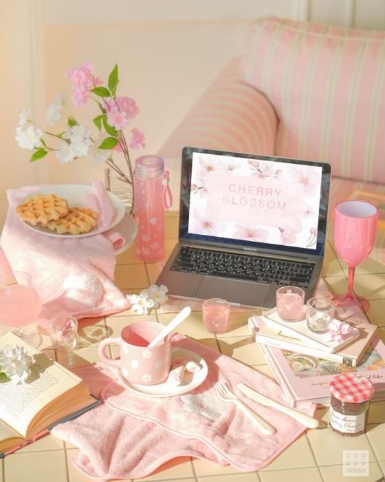 봄봄 휴지케이스와 원형 틴케이스 정리함 등 소품과 벚꽃 무늬 머그컵과 종이컵 등도 다양하게 준비했다.