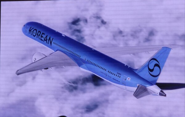 대한항공이 격납고에 설치한 대형 스크린에 새 로고가 모습을 드러냈다. 기존 대한항공 태극마크에 디자인적 요소를 가미해 세련된 이미지를 구현했다는 설명이다.