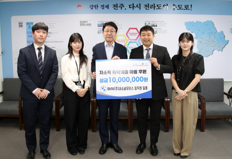 [스마트에프엔=한민식 기자] 전주시는 BMW 내쇼날모터스가 1일 관내 저소득 취약계층 아동을 위한 성금 1000만원을 기부했다고 밝혔다.