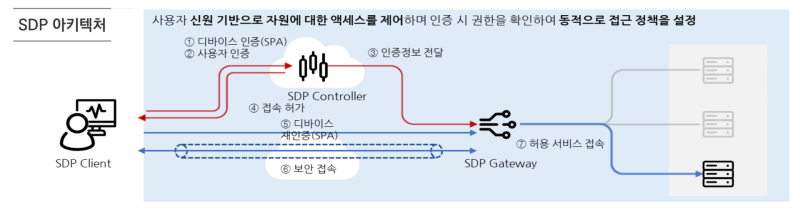 ‘SmartWAN’에 적용된 SDP 기술은 한국인터넷진흥원의 제로트러스트 가이드라인 1.0을 모두 충족해 최소 권한에 의한 업무망 이용과 세분화된 접근 권한 관리 등 한 단계 높은 보안 수준을 제공한다. 제로트러스트 가이드라인은 ▲강화된 인증(아이디/패스워드 외에도 다양한 인증정보를 활용한 다중인증 등 지속적인 인증을 포함), ▲마이크로 세그멘테이션(서버, 컴퓨팅 서비스 등을 중심으로 하는 작은 단위로 분리), ▲소프트웨어 정의 경계(소프트웨어 기반으로 보호 대상을 분리·보호할 수 있는 경계를 만들 수 있어야함)를 핵심 원칙으로 제시하고 있다.