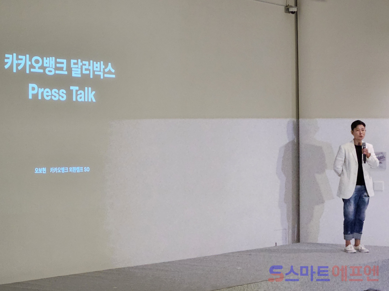 오보현 카카오뱅크 외환캠프 서비스오너(SO)는 25일 서울 강남구 모처에서 열린 기자간담회에서 신규 외환 서비스 '달러박스'를 출시했다고 밝혔다. 카카오뱅크는 2017년 송금수수료를 1/10 수준(5만원 → 5000원)으로 끌어내린 해외계좌송금 서비스를 출시한 바 있는데, 이제는 환전까지 외환서비스 범위를 넓힌 것이다.