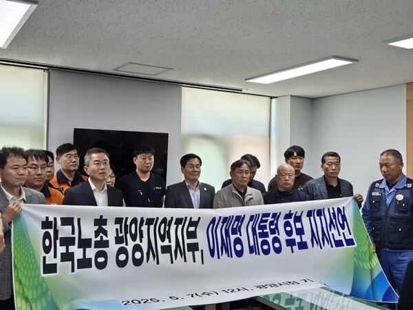 한국노동조합총연맹 광양지역지부가 7일 제21대 대통령 선거를 앞두고 더불어민주당 이재명 후보에 대한 공식 지지를 선언했다.