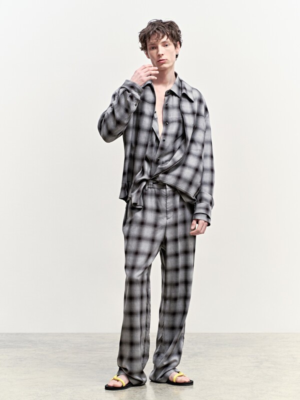 또한, 완성된 옷에 염색을 입혀 빈티지한 색감을 연출하는 ‘가먼트 다잉’ 공정을 적용해 자연스러운 색감의 매력을 강조했다. 이 외에도 파랑색과 노랑색이 불규칙적으로 뒤섞이는 화려한 패턴 반팔 셔츠와 짧은 반바지 코디를 통해 부조화가 가져오는 색다른 멋을 제안한다.