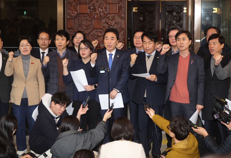 민주당은 이날 국회에서 긴급 의원총회를 연 뒤 이같은 내용을 담은 결의문을 발표했다.