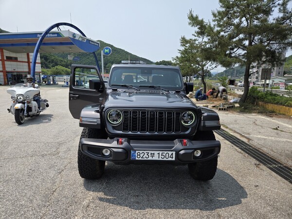 뉴 글래디에이터의 첫 인상은 '거대하다'였다. 전면부에서 느껴지는 지프 특유의 디자인과 크기에서 나오는 압박감이 인상적이었다. 실제로 탑승해보면 저상버스 정도의 눈높이로 주행한다는 느낌을 받을 정도로 높은 차체의 시야 개방감이 돋보인다.