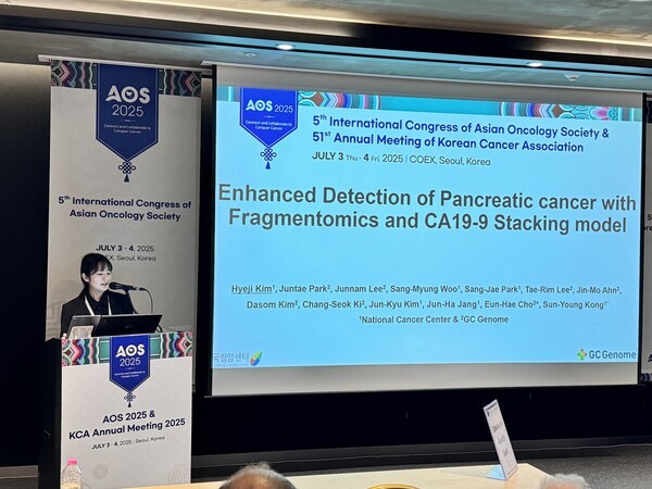 | 스마트에프엔 = 양대규 기자 | GC지놈(지씨지놈)은 자사의 다중암 조기진단 검사 ‘아이캔서치(ai-CANCERCH)’의 조기 췌장암 예측 성능을 입증한 임상 연구 결과가 아시아종양학회(Asian Oncology Society 2025)에서 발표됐다고 11일 밝혔다.