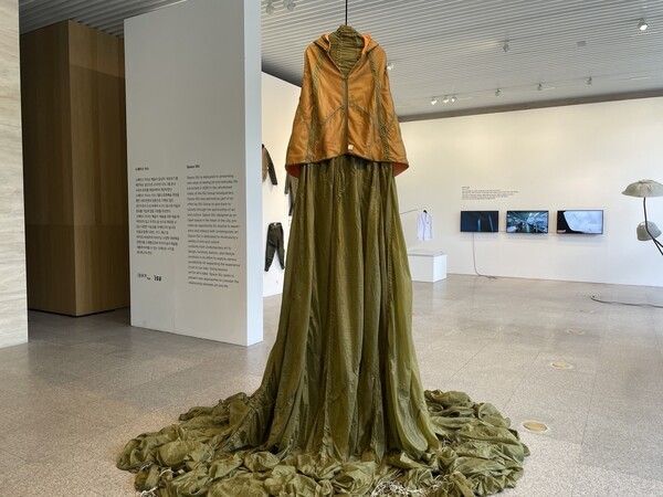 업사이클링 영역을 의료 분야로까지 확장한 시도도 눈에 띈다. 병원에서 사용됐던 폐의료복을 화학적으로 재활용해 흰색 알갱이 형태의 재생 PET 원료로 만들고, 이를 다시 실로 뽑아 옷으로 제작하는 과정을 영상으로 볼 수 있다. 관람객은 완성된 유니폼과 PET 알갱이를 함께 보며, 폐기물이 다시 패션으로 순환되는 과정을 직·간접적으로 체험할 수 있다.