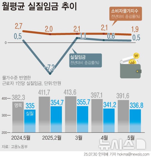 물가수준 반영 실질임금은 336만8천···전년 대비 1만8천↑