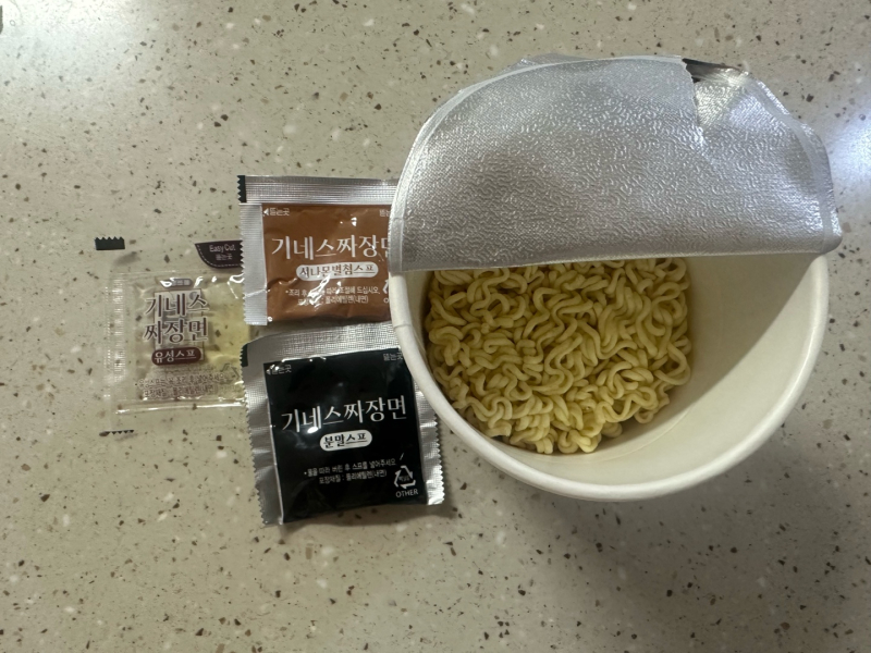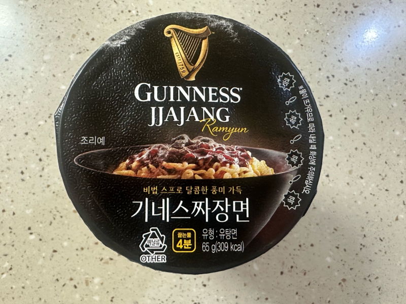 기네스 짜장면은 1500원에 판매하고 있으며 현재 2+1행사 중이다. 크기는 한 손에 들어올 정도로 작으며 한 컵에 309kcal이다. 일반 비빔라면과 동일하게 라면에 있는 물은 한 스푼 정도만 남기고 모두 버리는 형태이며 스프는 면을 모두 조리한 후 넣어야 한다.