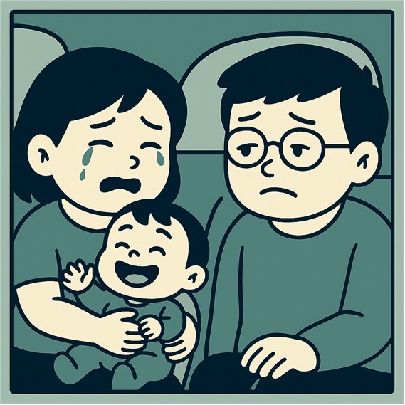 차에 타고 문 닫히는 순간, 아내는 눈물이 터지고 말았다.
