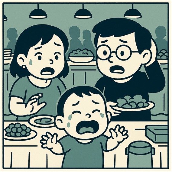 재이는 여전히 숟가락을 떨어뜨리고 괴성을 지르고 있다.