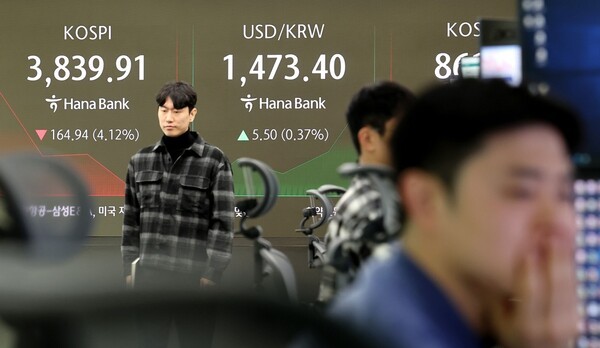 지수는 전장보다 96.15포인트(2.40%) 떨어진 3,908.70으로 출발한 뒤 하락 폭을 키웠다. 전날 코스피는 엔비디아의 예상치를 뛰어넘는 실적 발표로 1.92% 상승해 4,000선을 회복했으나, 하루 만에 이 수준을 다시 잃었다. 서울 외환시장에서 원·달러 환율은 전일 대비 4.5원 오른 1,472.4원으로 거래를 시작했다.