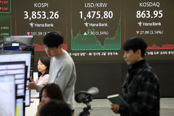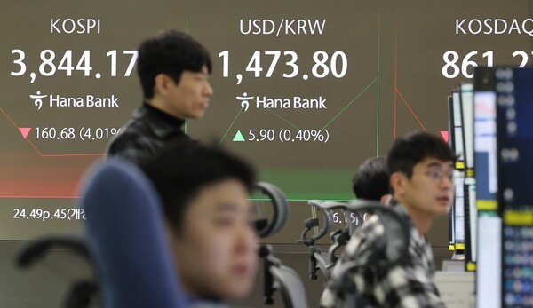 | 스마트에프엔 = 김효정 기자 | 글로벌 증시의 고평가 우려와 이에 따른 위험 회피 심리가 확산되면서 21일 국내 금융시장이 급격한 하락세를 보였다. 코스피는 이날 3.79% 내린 3,853.26에 거래를 마쳤고, 원·달러 환율은 1,475원대까지 상승했다.