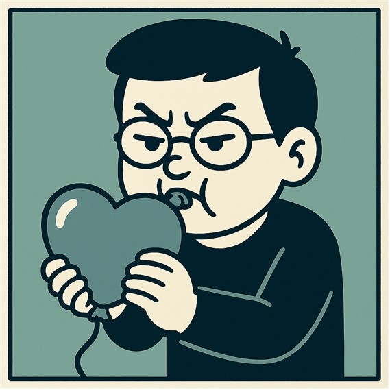 아내의 깊은 한숨에 결국 풍선에 바람을 넣기 시작했다.