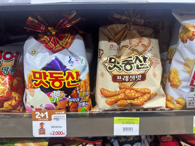‘맛동산 프레첼맛’은 기존의 맛동산에 MX세대를 겨냥한 프레첼을 혼합해 단짠조합을 내세운 제품이다. 땅콩과 소금 알갱이가 콕콕 박혀 있는 비주얼과 잘 구워진 빵을 연상케 하는 황금빛 패키지가 특징이다.