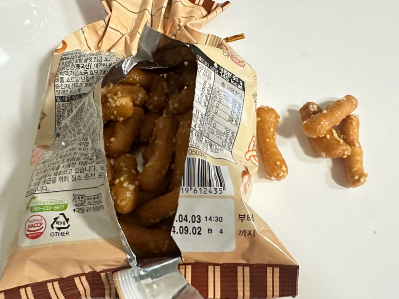 입안에 프레첼의 향이 적절하게 풍기면서 식감은 또 맛동산 그 자체라 단짠단짠의 조화가 적절하게 이루어졌다. 다만 간혹 가다가 소금의 입자가 너무 굵어서 짠맛이 강하게 느껴지기도 했다. 어린이용 과자보다는 MZ세대의 맥주 안주로 느껴질 만큼 매우 트렌디했다. 계속 판매한다면 가끔 안주용으로 사먹을 의향이 있다.