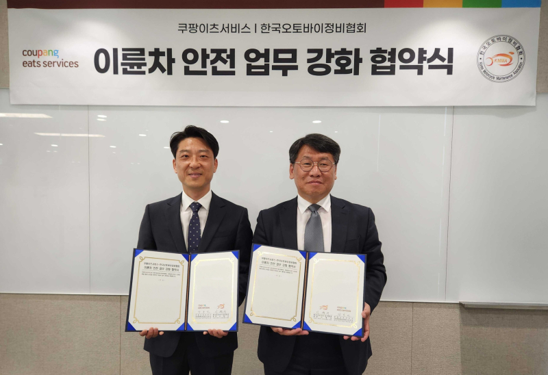 쿠팡이츠서비스는 이번 업무협약을 통해 배달파트너의 안전의식을 고취하는 사고 예방 프로그램을 운영하는 등 이륜차 안전점검 지원 확대에 힘쓴다는 방침이다. 업무협약식에는 강동진 쿠팡이츠서비스 상무와 이형석 한국오토바이정비협회 회장 등이 함께했다.