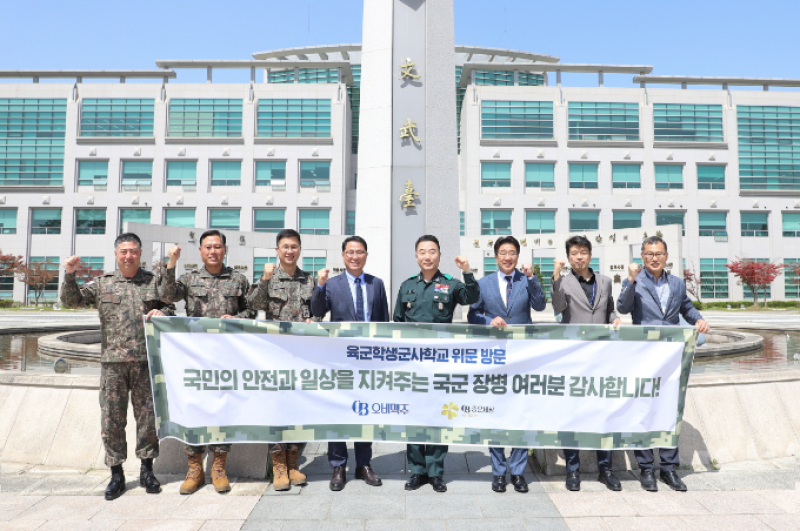 오비맥주는 육군학생군사학교 장병들이 지역 경제 활성화에 기여할 수 있도록 온누리상품권 등 1000만원 상당의 위문품을 전달했다.