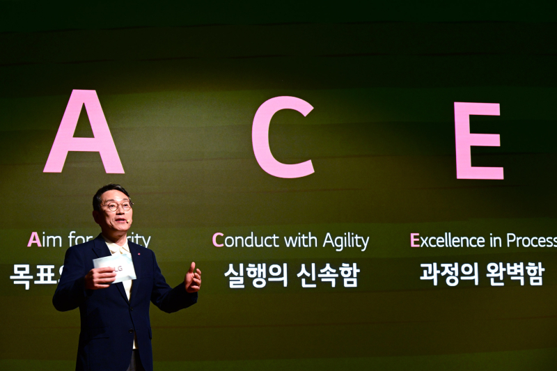 조주완 CEO는 이날 리더십을 위한 행동원칙으로 ‘A.C.E’을 제시했다.