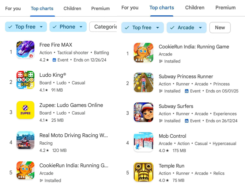 지난 11일 서비스를 시작한 쿠키런 인도는 이틀 후인 13일 인도 구글플레이 인기 게임 7위에 진입했다. 출시 첫 주말 동안 5위에 올라섰고, 이후 순위를 유지 중이다. 평점은 4.64로 높은 만족도를 기록하고 있다.