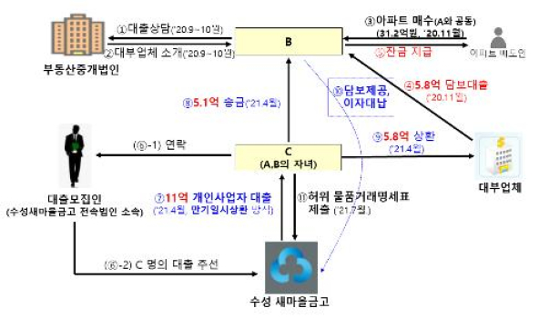 아울러 수성새마을금고에서 취급된 개인사업자 주택담보대출(주담대) 전체 53건에 대한 전수조사도 이뤄지고 있다고 덧붙였다. 지난 2월 기준 수성새마을금고의 주담대 대출잔액은 257억원에 달한다.