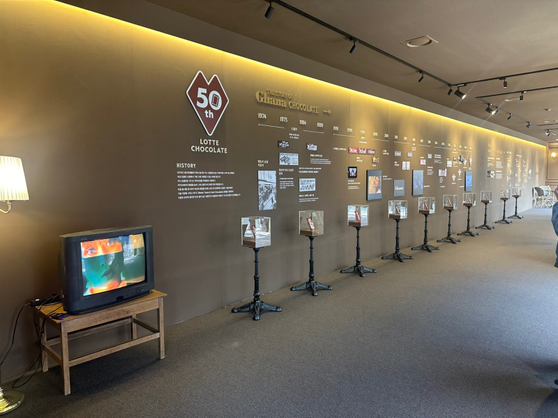 매장 왼쪽에는 박물관을 콘셉트로 꾸며진 공간이. 오른쪽에는 굿즈를 판매하는 곳과 포토존이 마련돼 있었고 2층은 가나초콜릿의 헤리티지를 담은 공간과 더불어 체험형 클래스존으로 꾸며져 있었다. 실제 롯데웰푸드는 가나초콜릿 하우스를 18세기 런던의 초콜릿 하우스에서 영감을 받았다고 한다.