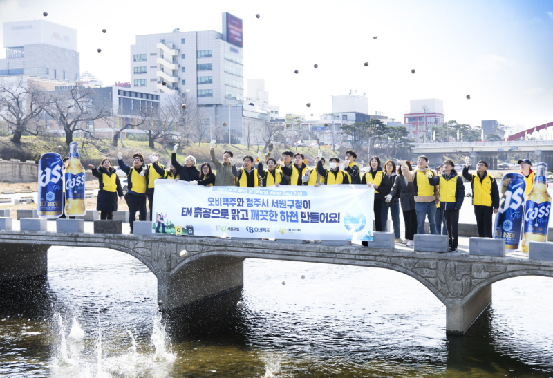 청주공장은 21일 오전 청주시 무심천 일대에서 플로깅과 EM 흙공 던지기 활동을 실시했다. EM흙공은 유용 미생물과 황토를 배합, 제작하여 하천의 수질 개선과 토양 복원, 악취 제거에 효과적이다. 하천 정화 활동에는 오비맥주 김두영 청주공장장, 김응오 청주시 서원구청장 등 30여명의 관계자가 참여했다.
