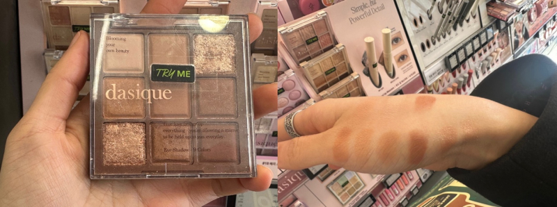 올리브영에서 테스트해본 데이지크 섀도우는 확실히 입자가 부드러웠다. 단 번의 발색으로도 색감이 진하게 올라왔다. 겉으로 봤을 때 두 제품은 매우 유사했으나 색감도 달랐고 특히 품질 면에서 확실한 차이가 벌어졌다. 알리 제품은 색감이 탁해서 웜톤제품인지 쿨톤제품인지 명확한 구분이 어려웠지만 올리브영제품은 어떤 피부톤에 어울리는 색조인지 확실하게 알 수 있었다.