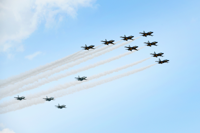 블랙이글스는 지난 2012년 영국 와딩턴 에어쇼를 시작으로 싱가포르, 말레이시아, 이집트, 폴란드 등 다양한 해외 에어쇼에 참가해 K-방산 수출의 1등 공신이자 민‧군‧관 원팀(One Team) 마케팅의 상징으로 평가되고 있다.
