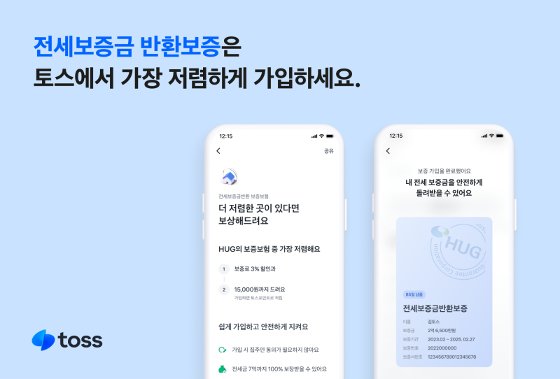 앞서 토스는 지난해 10월 HUG와 제휴해 전세보증금 반환보증 가입 서비스를 시작했다. 토스 앱에서 HUG가 판매 및 관리하는 전세보증금 반환보증 상품에 대해 ▲예상금액 조회 및 보증 신청 ▲신청결과 수신 ▲보증료 결제 및 보증 가입까지 모두 가능한 서비스다.