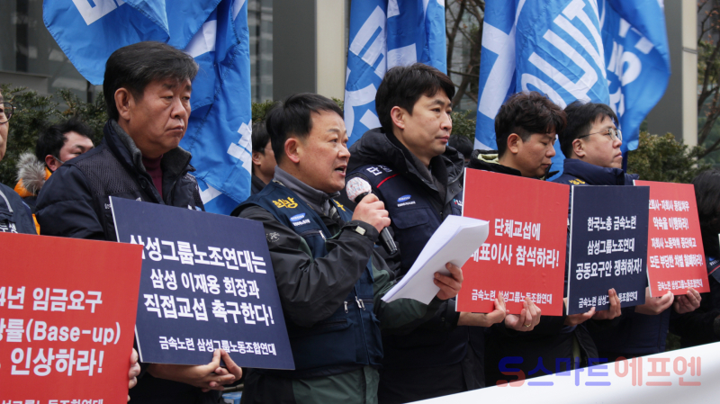 현장에 참석한 30여명의 노조 관계자도 “이재용 (삼성그룹) 회장에 요구한다. 노동조합과 대화하자”, “삼성그룹에 촉구한다. 노사관계 개선하라”는 구호를 외쳤다.