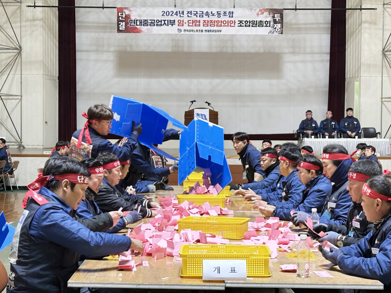 이날 총회에는 조합원 6656명 중 93.03%인 6192명이 투표에 참여해 찬성 59.17%(3,664명), 반대 40.12%(2484명), 무효 0.71%(44명)로 잠정합의안이 통과됐다.