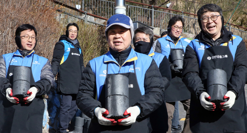 이날 봉사활동에 참여한 진옥동 회장과 임직원들은 갑작스러운 한파로 더욱 힘든 시기를 보내고 있는 개미마을의 에너지 취약가구를 방문해 총 1000장의 연탄과 함께 방한용품도 전달했다.