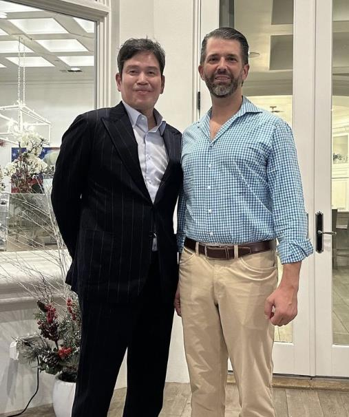 정 회장은 해당 사진과 함께 "트럼프 주니어와 만나서 이런저런 얘기 하고 왔음. 10년 전에 어느 언론사 행사에서 바로 옆자리에 앉은 적 있음"이라고 간략하게 글도 올렸다.