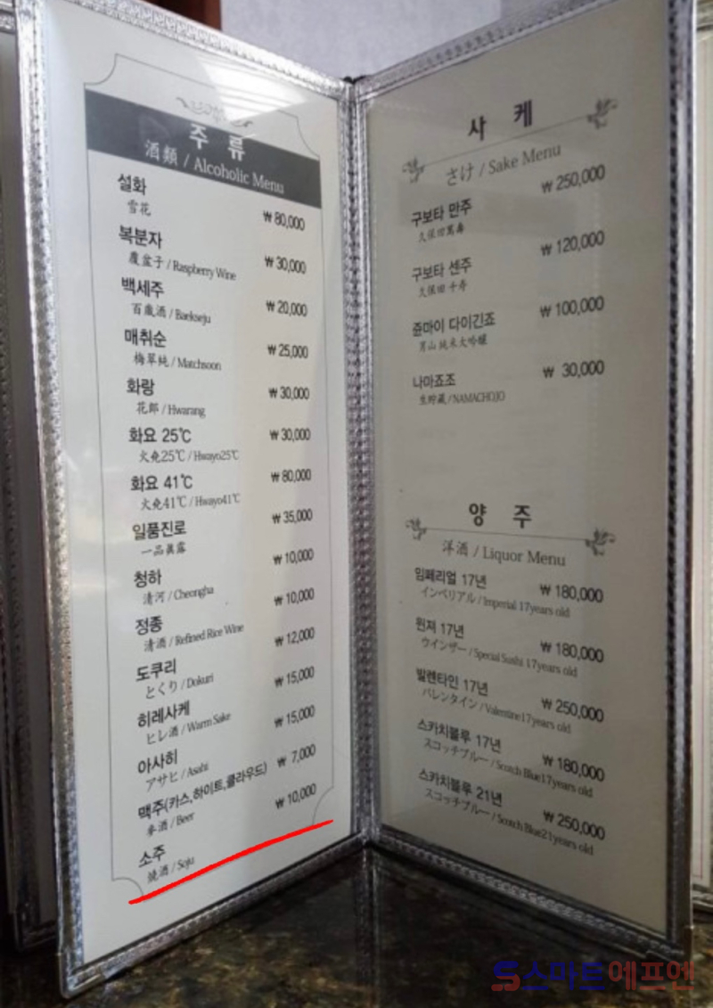 그러나 현재 수도권 대부분의 식당에서는 소주를 5000원대 이상으로 판매하고 있고, 강남 지역에는 7000원에서 1만원대까지 대폭 인상해 판매하는 업주들도 있다. 2012년까지만 하더라도 식당 기준 소줏값은 3000원이었다. 이는 10년 사이 약 3배 이상 가격이 널뛰기 한 셈이다.