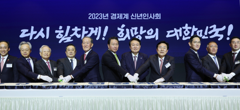 이외에도 최태원 대한상공회의 회장은 지난달 28일 발표한 신년사에서 “지난해 ‘헤어질 결심’을 해야 했지만 올해는 ‘뭉쳐야 산다’는 의지로 어려움을 잘 이겨내야 한다”며 “기업과 기업 사이, 기업과 노동자 사이, 민간과 정부 사이의 협력이 어느 때보다 중요하다”고 강조했다.