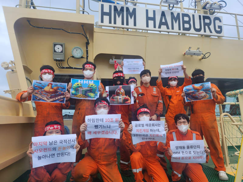 노조는 또 “HMM은 글로벌 해운 선사와 경쟁할 수 있는 유일한 국적선사라는 것을 명심하고 매각주체뿐만 아니라 정부가 나서서 매각을 전면 재검토해야 한다”며 “유보금 10조원을 약탈하려고 하는 인수주체들에 대해서 대한민국 정부와 국가기관들이 놀아나서는 안 된다”고 당부했다.