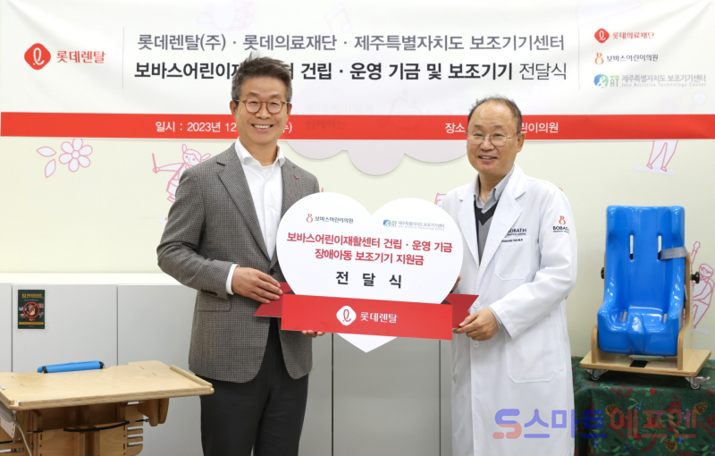 이 자리에서 롯데렌탈은 롯데의료재단과 기부 협약을 체결하고 오는 2025년까지 총 1억2000만원 규모의 어린이재활센터 건립 및 운영기금 후원을 약속했다. 제주특별자치도보조기기센터에는 장애아동 보조기기 지원 사업을 위한 기부금을 전달했다.