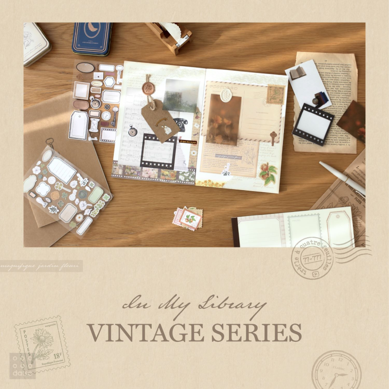 팬시용품은 메모지와 포장봉투, 선물상자 등을 판매한다. ‘트레싱지 메모지’는 두 가지 사이즈로 마련했다. 한 사이즈 당 4가지 디자인이 들어있어, 다양하게 꾸밀 수 있고, 반투명한 메모지에 독특한 무드의 디자인으로 눈길을 사로잡는 아이템이다. ‘풍경 빈티지 포장봉투’는 포장봉투 용도 뿐만 아니라 카페 등에서 인테리어 소품으로도 사용하면 색다른 분위기를 연출할 수 있다. ‘빈티지 책 지함’은 선물상자로 기획됐지만 빈티지 다꾸 시리즈를 보관하기에 알맞은 상품이다.