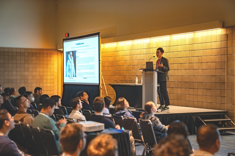 학회 개막일인 지난 10일 열린 엑스포 데이(Expo Day)에서 이문태 어드밴스드 ML(Advanced Machine Learning)랩장은 AI 연구자들을 위한 생성형 AI 서비스인 ‘엑사원 유니버스(EXAONE Universe)’를 발표하고 시연을 진행했다.