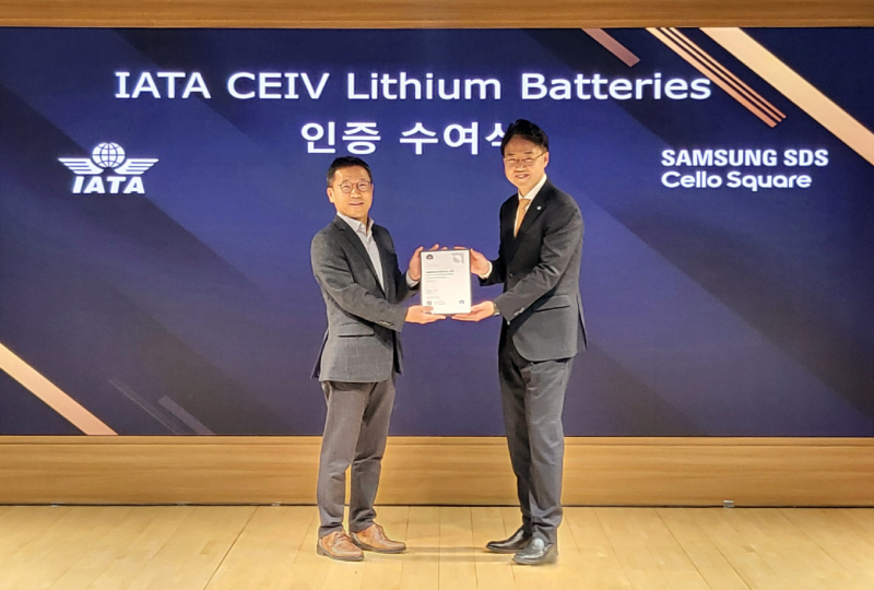 또, 삼성SDS는 이번 인증을 통해 검증된 리튬 배터리 항공 운송 절차 및 기준을 디지털 물류 서비스 '첼로스퀘어'에도 상세 적용하고 상품화 해 물류 사업 영역을 지속 확장해나갈 예정이다.