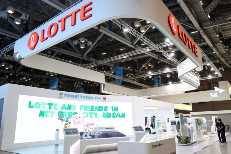 롯데지주는 5월 25일부터 27일까지 부산 벡스코에서 열린 ‘제1회 기후산업국제박람회’에서 그룹의 탄소중립 역량을 보여주는 ‘롯데그룹관’을 운영했다. 롯데는 2040년 탄소중립 목표를 바탕으로 재생에너지 전환, 탄소포집, 에너지 효율개선, 수소에너지, 연료 전환, 무공해차 전환 등 6대 핵심 저감 활동을 설명하고 그룹의 탄소중립 로드맵, 계열사의 친환경 사업을 소개했다. 고객들이 일상 속에서 접할 수 있는 친환경 활동도 선보였다. 롯데마트, 롯데면세점 등 유통 계열사의 재활용이 가능한 친환경 포장재와 롯데칠성음료의 다양한 무라벨 제품을 전시했다. 롯데케미칼 플라스틱 선순환 프로젝트 ‘프로젝트 루프’ 제품, 각 계열사의 폐트병∙폐현수막 재활용 사례를 통해 플라스틱 선순환 활동을 설명하고 롯데 유통군의 ‘RE:EARTH’, 롯데칠성음료의 ‘ReGreen’ 등 환경 개선을 위한 그린캠페인 등을 알려서 관람객 투표 결과 ‘베스트 참가 기업 어워즈 탄소중립관 부문 1위’로 선정되기도 했다.