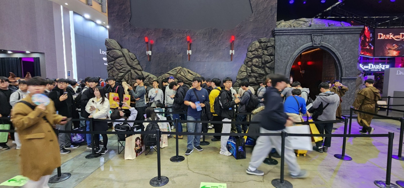 크래프톤은 다크앤다커 모바일을 관람객들이 게임을 직접 플레이해볼 수 있는 시연대 70석을 마련했다. 지스타 개막일인 지난 16일 관람객들은 다크앤다커 모바일의 시연을 위해 2시간 이상 대기했다.