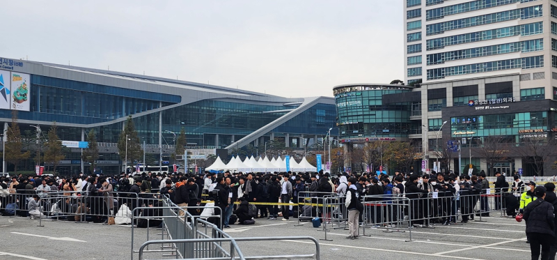 이날 지스타 2023 행사가 진행 중인 부산 벡스코에는 행사장에 들어가기 위해 몰린 인파로 붐볐다. 올해 19회째를 맞이한 지스타 2023은 한국게임산업협회(K-GAMES)가 주최하고 지스타조직위원회와 부산정보산업진흥원이 공동 주관을 맡아 이날부터 오는 19일까지 나흘간 개최된다.
