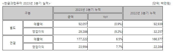 특히 AI(인공지능) 사업에서 성과가 빠르게 드러나고 있다. 첫 AI 서비스인 ‘한컴독스 AI’의 CBT(비공개 베타 테스트)를 오는 27일까지 완료하고 내년 정식 서비스 출시를 준비하고 있으며, 올 연말에는 AI를 적용한 ‘한컴오피스’를 선보이는 등 한컴만의 독자적인 AI 사업화를 지속할 계획이다.