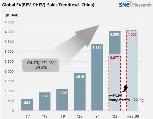 북미 시장은 테슬라의 공격적인 할인 정책으로 증가한 판매량으로 시장 성장세를 이어갔다. 아시아 시장은 현대자동차그룹이 견조한 판매량으로 성장세를 견인했다.
